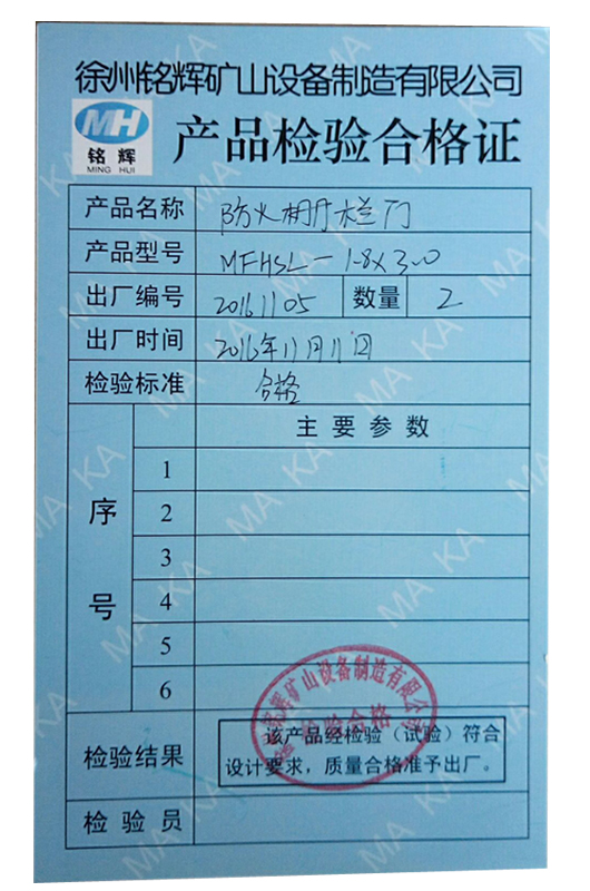 本防火及柵欄兩用門為煤炭工業(yè)部武漢煤礦設(shè)計研究院設(shè)計,產(chǎn)品質(zhì)量標準和檢測標準嚴格執(zhí)行Q/WMS-3011-2005《防火及柵欄兩用門》。